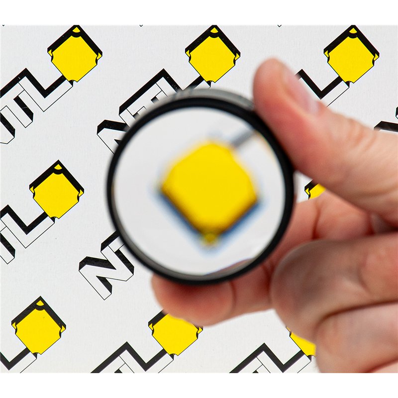 Konvexná šošovka z vysoko kvalitného optického skla, namontovaná v ráme (ohnisková vzdialenosť je uvedená na ráme)